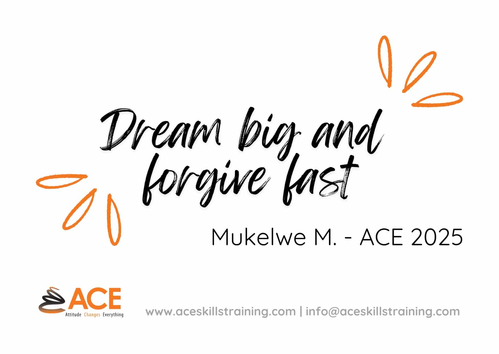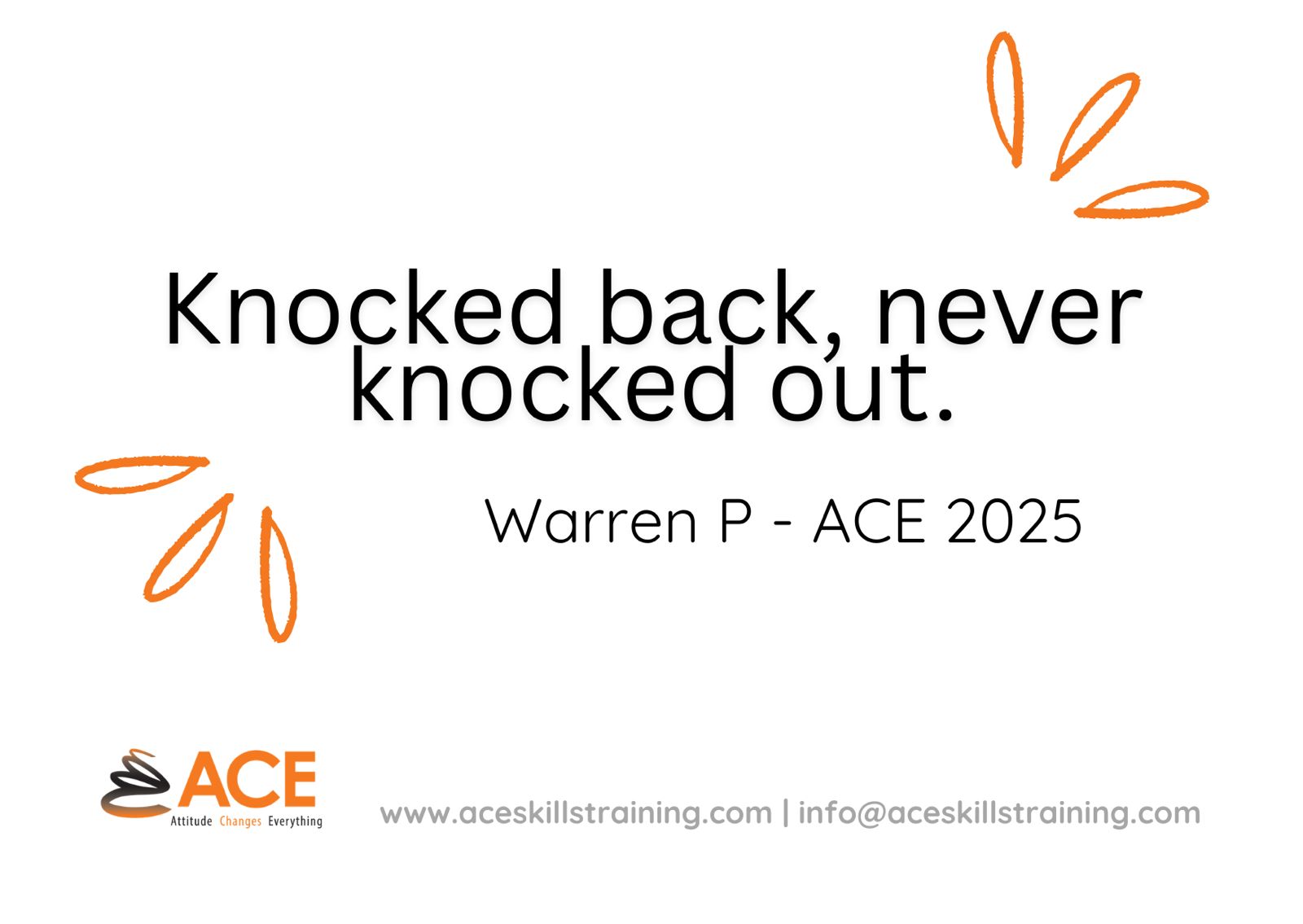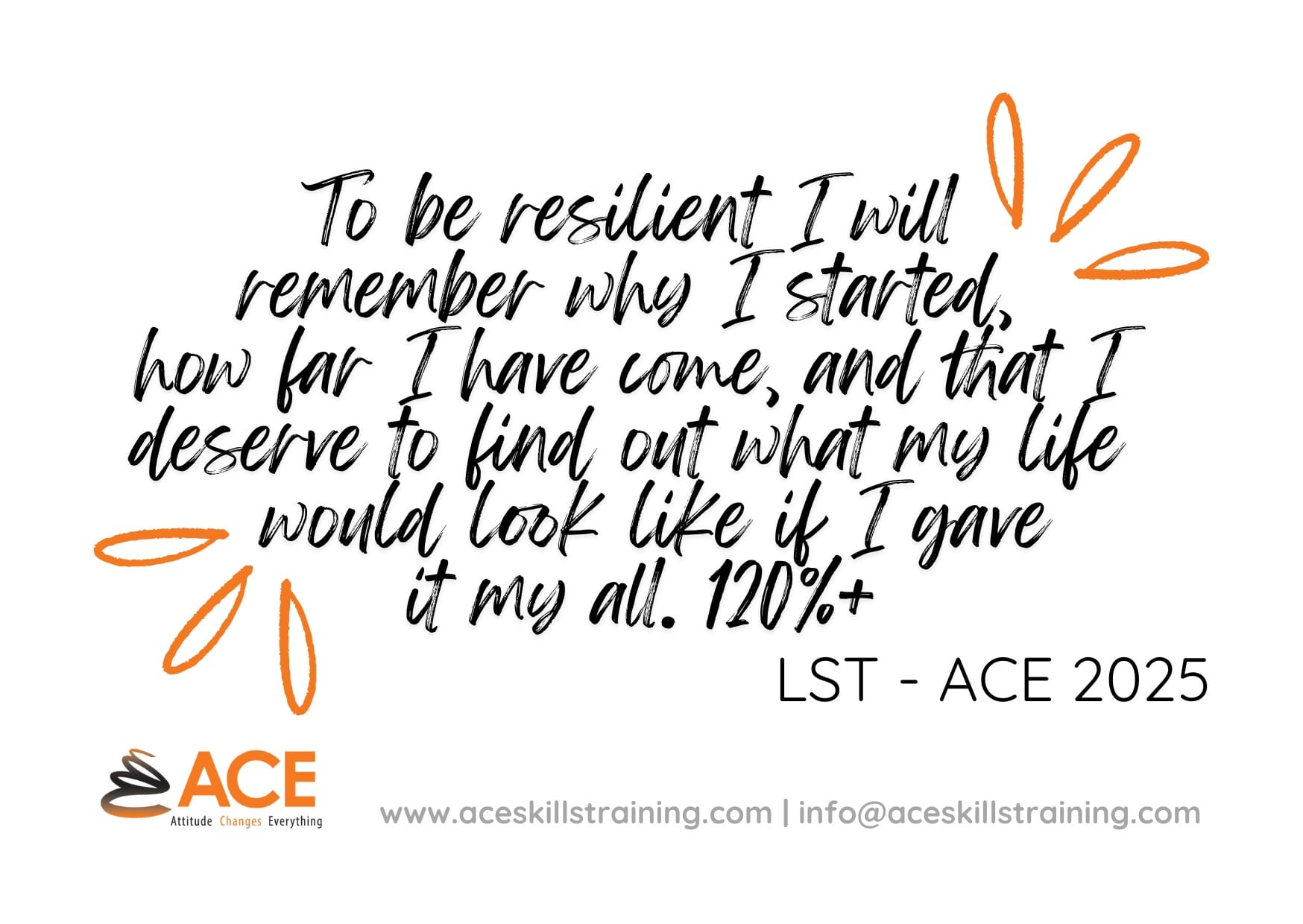 The ACE resilience slogans represent the delegates commitment and dedication to the ongoing investment in resilience as a skill. It is underpinned by exploring individual values, as personally held values determine aspirations and principles enabling living with purpose. “Living on purpose” means doing what truly matters in alignment with values and beliefs. To live with purpose is an investment in self, and it requires ongoing inner work. The slogans are memorable, concise and aims to support the delegates.